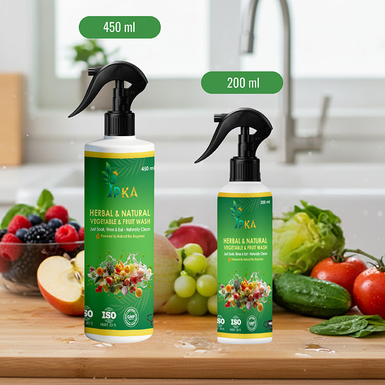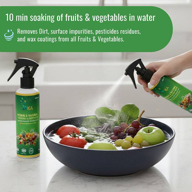 Protect your family’s health with our herbal and natural vegetable and fruit wash, specially formulated to clean fruits and vegetables safely and effectively. This gentle, plant-based wash helps remove dirt, wax coating, pesticides, germs, and harmful residues commonly found on fresh produce, without affecting natural taste, texture, or nutrition.