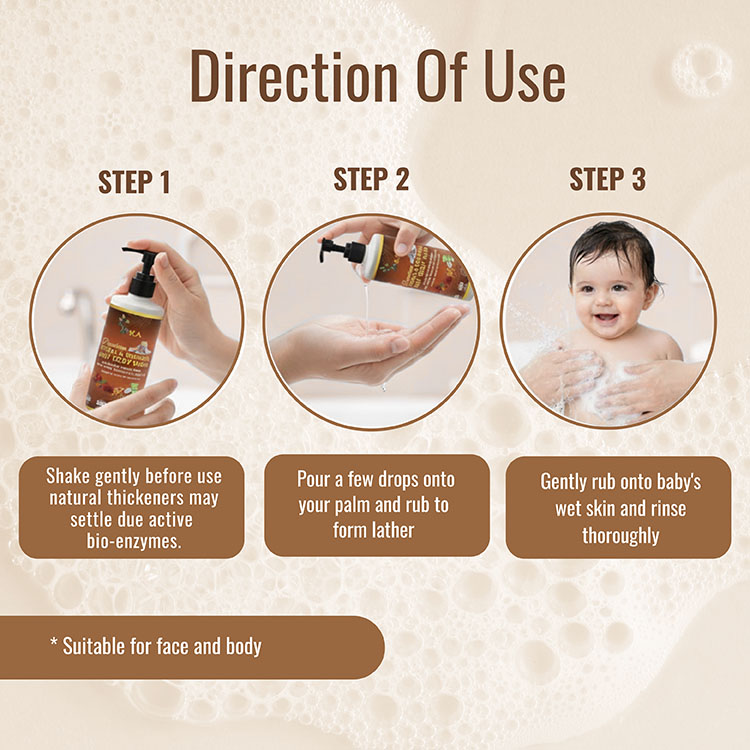 Choose our premium herbal and natural baby body wash and shampoo for a safe, gentle, and nourishing bathing solution that provides complete care for your baby’s skin and hair—because your baby deserves nothing but the purest touch of nature.