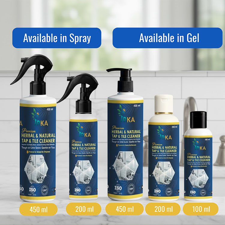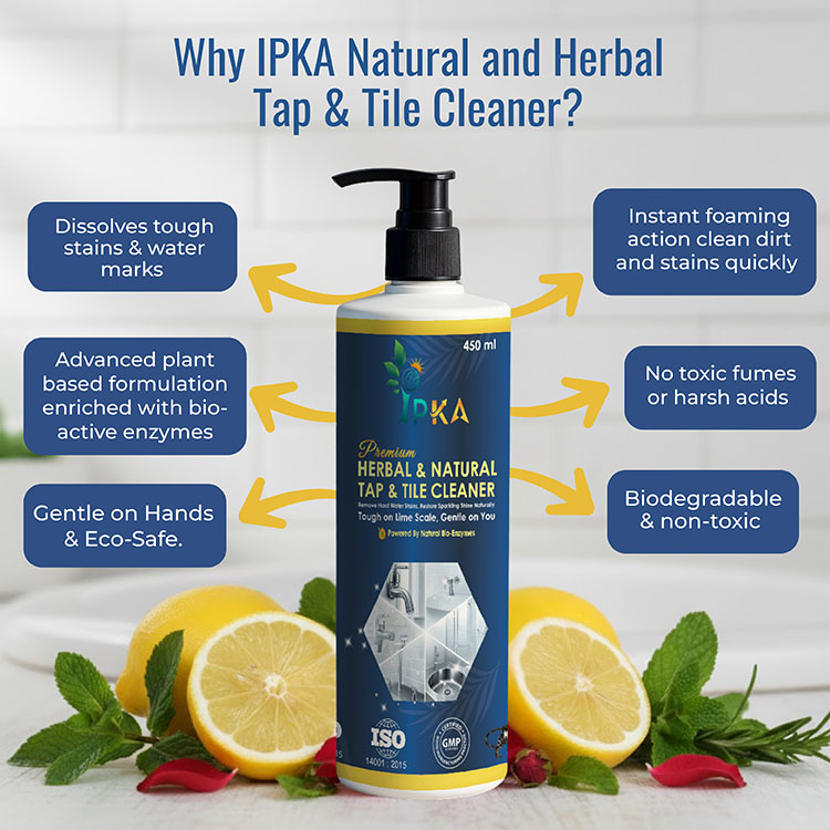 Its natural yet powerful formula works effectively on taps, tiles, wash basins, sinks, showers, and bathroom fittings, restoring cleanliness and shine without scratching or damaging finishes. Unlike chemical cleaners that may release strong fumes or leave harmful residues, this herbal cleaner is non-toxic, skin-friendly, and safe for regular use.