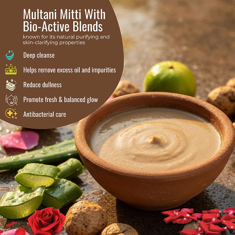 Key Ingredients: Multani Mitti (Fuller’s Earth), herbal extracts