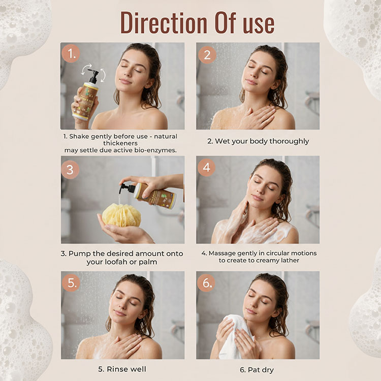 Unlike chemical-based cleansers, its chemical-free and skin-friendly formula is mild, non-drying, and safe for regular bathing. It helps improve skin texture, reduce dullness, and promote a clean, healthy glow. The refreshing natural fragrance adds a calming and revitalizing bathing experience.
